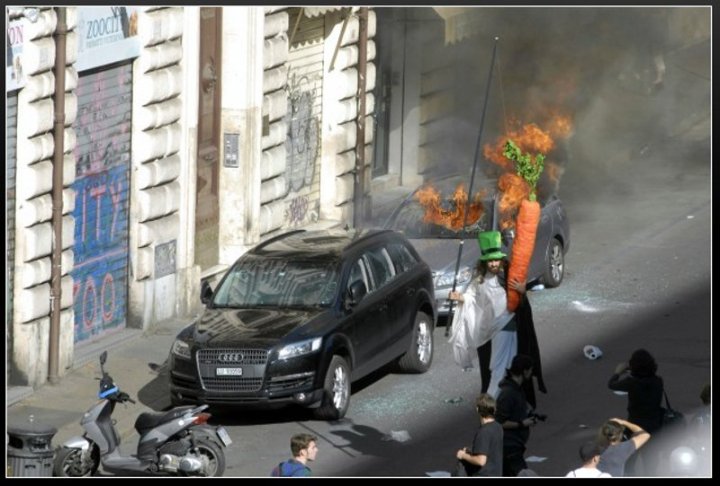 Gli Indignati italiani indignano. Se a Madrid e negli Stati Uniti abbiamo visto proteste pacifiche, in Italia stiamo vedendo il solito teatrino della violenza. Personalmente sono sempre stato dalla parte dei manifestanti e della gente per bene, ma oggi non posso non ricordare le parole dei poliziotti che da giornalista ho raccolto e le immagini di protesta delle forze dell’ordine contro il Governo. Non è perbenismo. E’ civiltà. Io ripudio la guerra e anche quella urbana. Non credo che quel povero cristo che stasera, una volta finiti gli scontri, scenderà sotto casa e si troverà la macchina bruciata possa in qualche modo giustificare la violenza dei manifestanti. Non credo che danneggiare il patrimonio storico e culturale del nostro paese migliori la situazioni economica. Non posso non rivolgere solidarietà a quei commercianti che domani dovranno ordinare nuove vetrate.