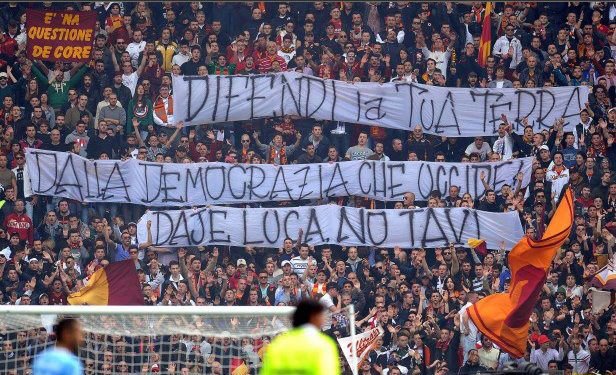 Sono rimasto colpito dallo striscione che oggi è comparso allo Stadio Olimpico di Roma. Uno striscione senza alcuna attinenza sportiva, ma con una valenza politica. Nello striscione si incitavano i valsusini a continuare a difendere il territorio e si lanciava un augurio al leader NoTav Luca Abbà. Ieri abbiamo visto manifestazioni in tutta Italia e anche nella capitale a sostegno della lotta valligiana. La protesta cambia volto e probabilmente assume una connotazione differente rispetto a quello che era in passato.