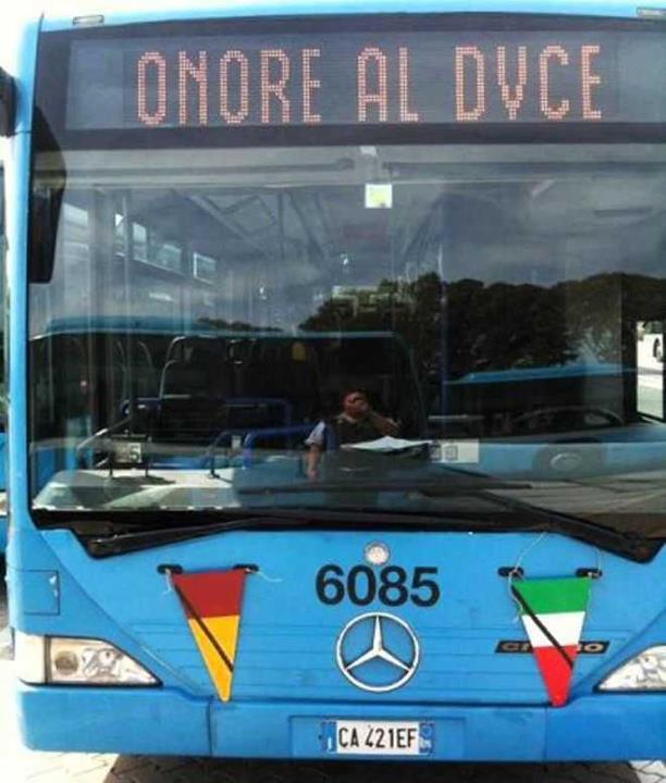 A Roma una scritta inneggiante a Mussolini su un mezzo pubblico