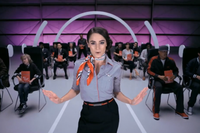 “Allacciare le cinture; la mascherina dell’ossigeno è sulla vostra testa; il salvagente si trova sotto il seggiolino“. Ironizzare è doveroso. Per scaramanzia o per simpatia, lanciare una battuta o sbadigliare durante le istruzioni di sicurezza che precedono i decolli aerei è inevitabile. A risolvere il problema ci ha pensato la compagnia aerea low-cost major americana Virgin America che ha commissionato un video al regista Jon M.Chu (Step Up 2, Step Up 3D). In totale sono stati impegnati nelle riprese ben 36 ballerini che hanno trascorso ben 26 ore sul set, il risultato è ottimo: 5,8 milioni di visualizzazioni su YouTube, 430.000 azioni di Facebook e 17.000 tweet in meno di 2 settimane.