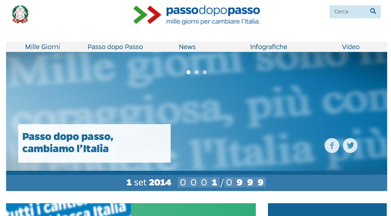 “Passo dopo passo, mille giorni per cambiare l’Italia” – è questo lo slogan che ha deciso di adottare Matteo Renzi per lanciare il sito con il quale traccia il diario di bordo del Governo per i prossimi tre anni.