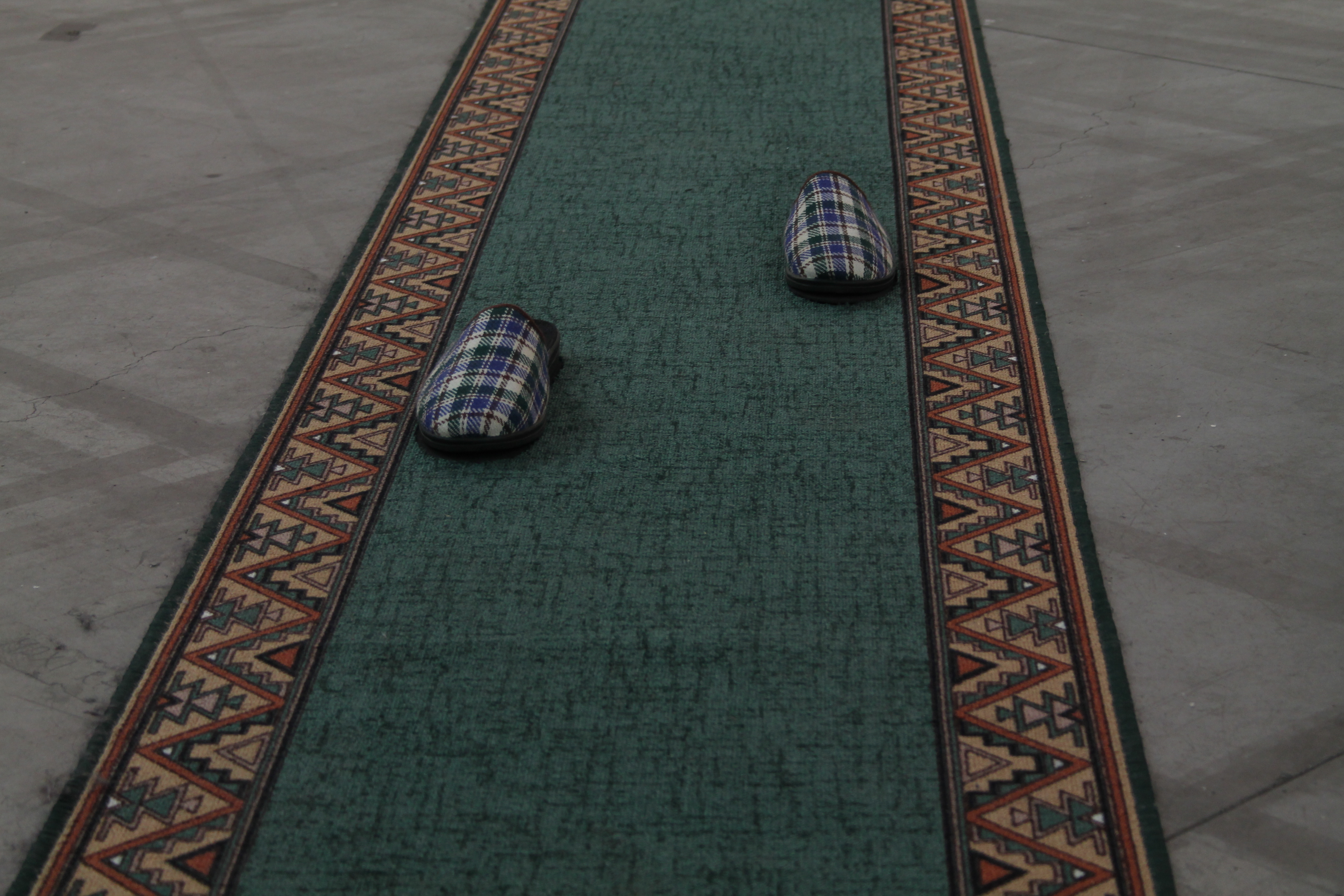 Ultima, ma non per importanza, l’opera che considero principale nell’edizione 2014 di Artissima. Quella che mi ha convinto ad alzarmi dal mio divano e partire verso il Lingotto: Tappeto casalingo con ciabatte. Questa. Non credo abbia bisogno di commenti.