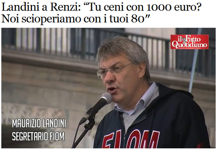 Un messaggio semplice, diretto e rivolto alla pancia. “Tu ceni con 1.000 euro? Noi scioperiamo con i tuoi 80” – una dichiarazione che raggiunge l’utente nel tempo di uno starnuto, che evoca un’immagine forte e che non svilisce il contenuto. Anche in questo caso viene creata una contrapposizione: noi (Landini e chi sta con lui) contro te (Matteo Renzi). Il meccanismo è lo stesso. Lo abbiamo già descritto all’inizio.