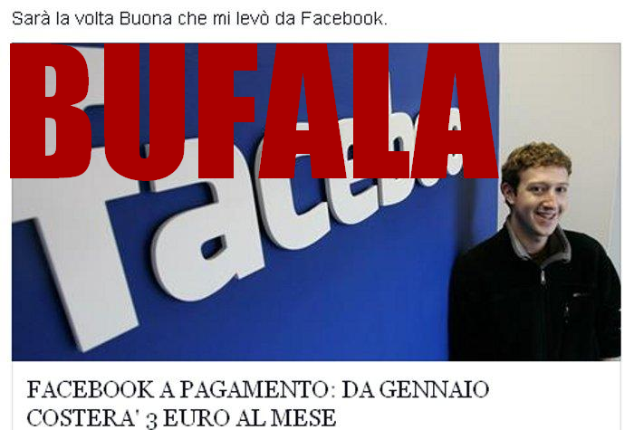 Gli affezionati di facebook possono dormire sonni tranquilli, il famoso social network il prossimo anno non verrà messo a pagamento. Sul web in questi giorni circolano post di blog in cui si asserisce che Mark Zuckerberg avrebbe assunto questa decisione per coprire le spese di gestione del social. Addirittura qualcuno avrebbe messo in circolo persino il prezzo dell’abbonamento mensile, per noi italiani di 3 euro. Tutto falso.