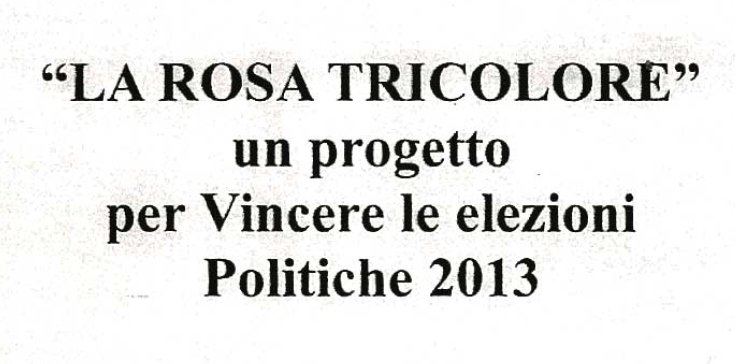 “La Rosa Tricolore”, un progetto per vincere le elezioni Politiche 2013. Era il 21 giugno del 2012 quando L’Espresso pubblicava un articolo dal titolo: Berlusconi: il piano per Renzi premier. L’occhiello era: ‘L’Espresso’ è entrato in possesso del documento riservato messo a punto per il Cavaliere da un gruppo ristretto di consiglieri capeggiati da Dell’Utri e Verdini (oltre che dal suo nuovo guru Volpe Pasini). Risultato: via il Pdl e quasi tutti i suoi dirigenti, nasce una Lista Civica nazionale che dovrà allearsi con il sindaco di Firenze, destinato a Palazzo Chigi. Obiettivo: salvare Silvio dai giudici e (se possibile) farlo eleggere Presidente della Repubblica. Di spalla un pezzo con l’intero documento: La Rosa tricolore, il progetto originale.