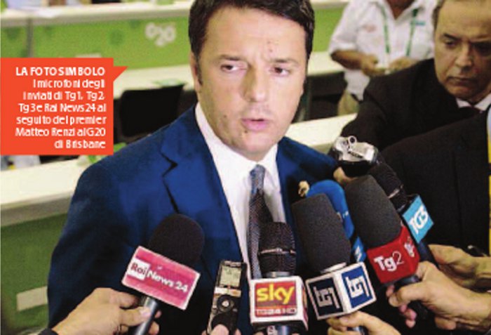 È da ieri che mi farfuglia in testa questa dichiarazione del direttore generale della RAI Luigi Gubitosi. Per rafforzare il concetto l’articolo era accompagnato da una fotografia dell’ANSA che riprende una zona mista in cui Matteo Renzi parlava alla stampa dopo il G20 di Brisbane in Austria. Scandalo. Davanti al presidente del Consiglio c’erano i microfoni di Tg1, Tg2, Tg3, Rai News 24 e radio Rai, per un totale di 13 giornalisti mobilitati e 60.000 euro di spesa.