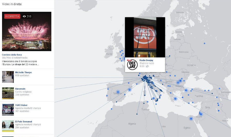 Come vedete sulla colonna di sinistra trovate i video suggeriti da Facebook, mentre sulla mappa una serie di dirette geolocalizzate.