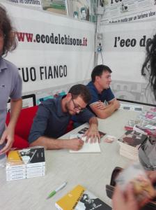 Insieme a me c’erano Alessandro Gaido e Matteo Fenoglio. Anche loro hanno presentato i loro lavori. Gaido ha parlato del suo “Il commissario di Torino” edito da Alzani, mentre Fenoglio ha parlato della sua ricostruzione a fumetti della strage di Piazza Fontana e Piazza della Loggia editi da Edizioni Becco Giallo.