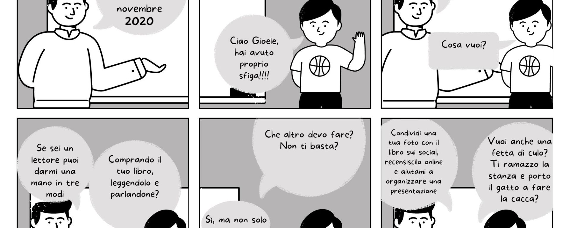 Se sei un lettore o una lettrice puoi aiutarmi in tre modi: condividendo sui social contenuti relativi al mio libro come per esempio la fotografia della copertina o un video durante il quale spieghi perché ti è piaciuto; oppure lo puoi recensire sugli shop online, questo è un passaggio molto importante perché più recensioni il libro ha, maggiore visibilità avrà; infine possiamo creare rete insieme e tu puoi darmi una mano organizzando una presentazione del libro magari presso la sede di un’associazione che conosci, un circolo oppure anche semplicemente a casa tua.