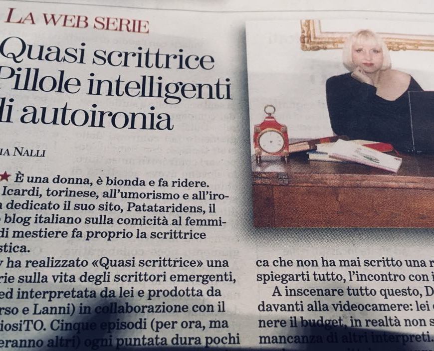Io ve lo dico: quello che segue sarà un post breve e ad alto tasso di autoreferenzialità. Oggi su La Stampa di Torino Noria Nalli ha scritto una bella recensione su “(quasi) Scrittrice” la web serie ideata da Desy Icardi che abbiamo realizzato io e Luca Lanni (Ur.La. Produzioni) e che abbiamo pubblicato su CuriosiTO, la pagina facebook che si occupa di “Cazzeggio&Tempo Libero” a Torino. Continua a leggere ““(quasi) Scrittrice” su La Stampa: ecco tutte le puntate”