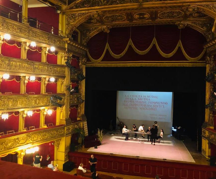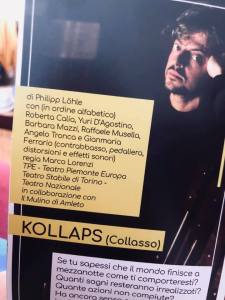 Palco 36, Teatro Carignano a Torino. Ieri sera, sabato 1 agosto, per assistere a Kollaps per la regia di Marco Lorenzi. Di questa stagione estiva è lo spettacolo più bello al quale ho assistito. Senza nulla togliere però a Locke di Filippo Dini.